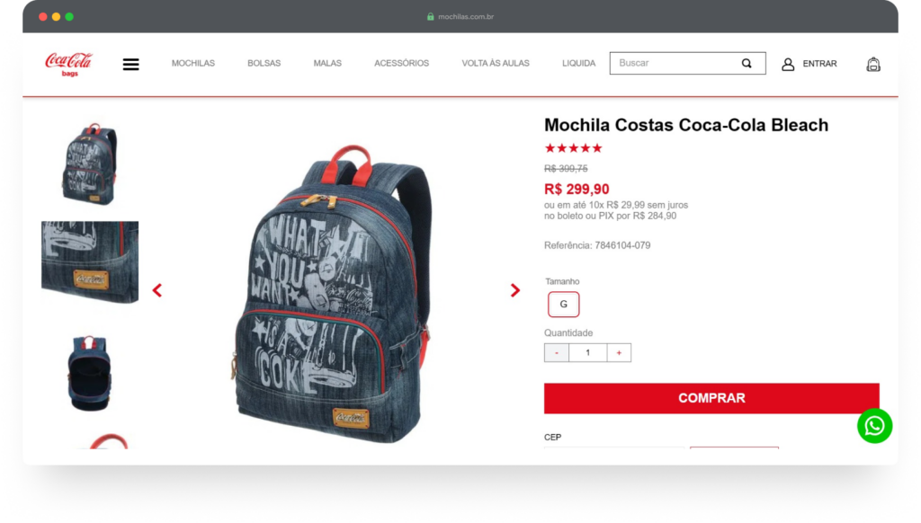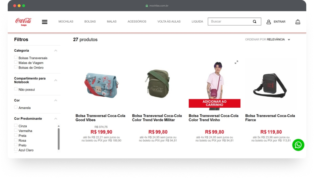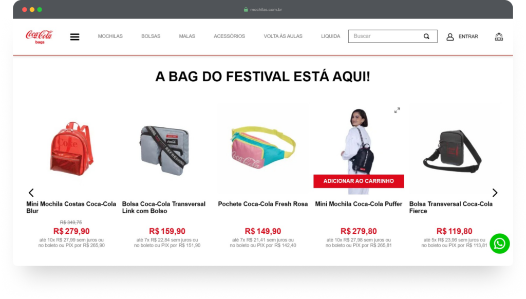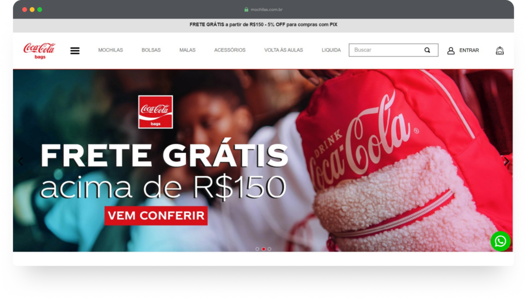 Desenvolvemos o e-commerce da Coca-Cola Bags, marca de mochilas e acessórios licenciados da Coca-Cola, estruturando toda a operação digital sobre a arquitetura VTEX IO.